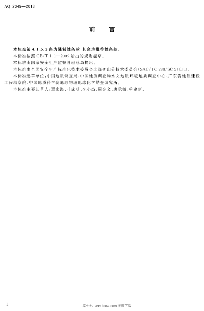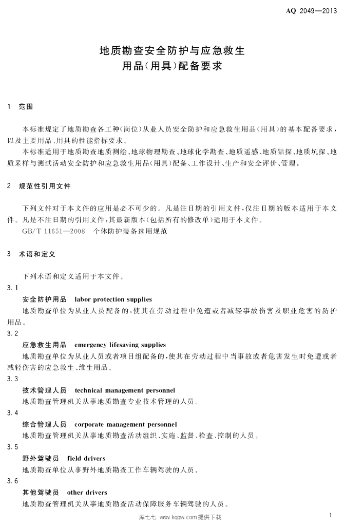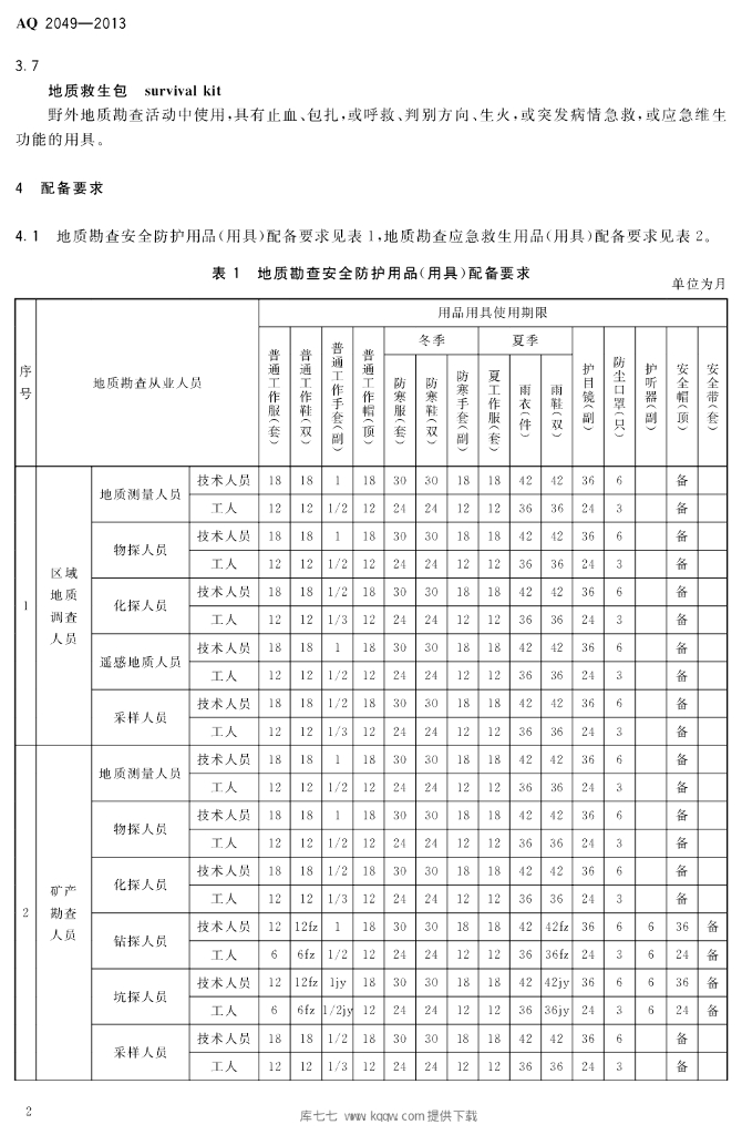 AQ 2049-2013 地质勘查安全防护与应急救生用品(用具)配备要求