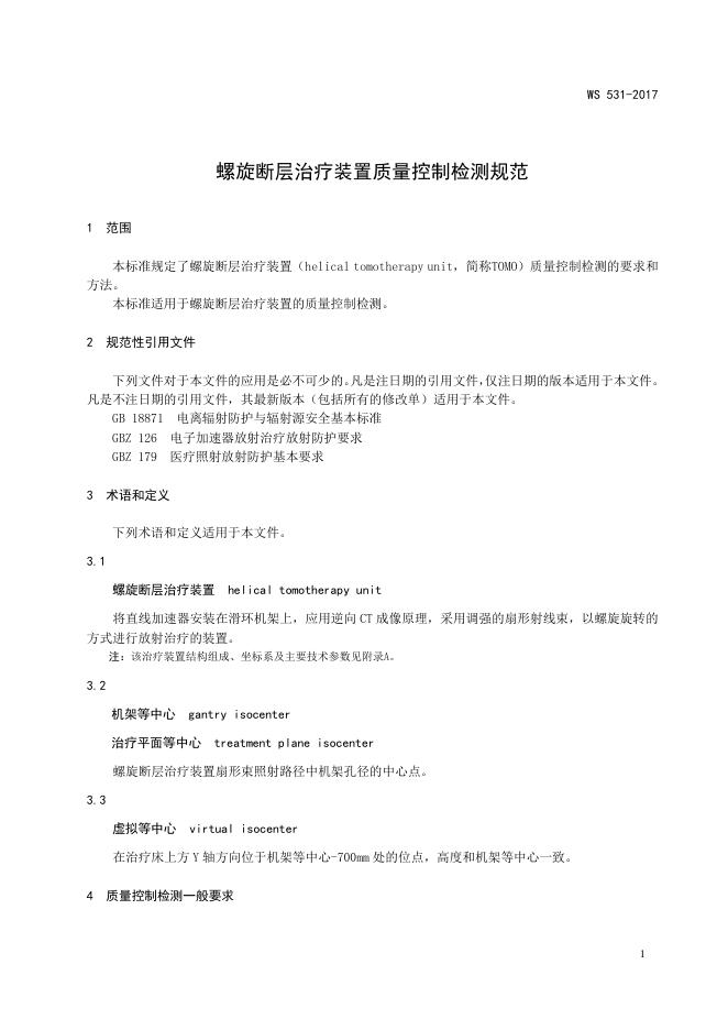 WS 531-2017 螺旋断层治疗装置质量控制检测规范