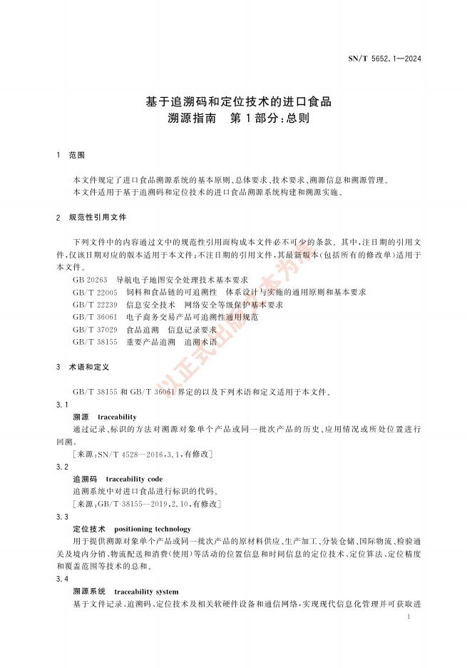 SN/T 5652.1-2024 基于追溯码和定位技术的进口食品溯源指南 第1部分:总则