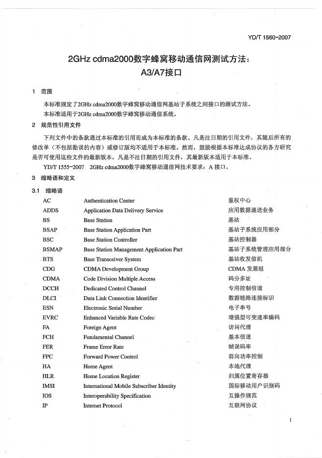 YD/T 1560-2007 2GHz cdma2000数字蜂窝移动通信网测试方法:A3/A7接口
