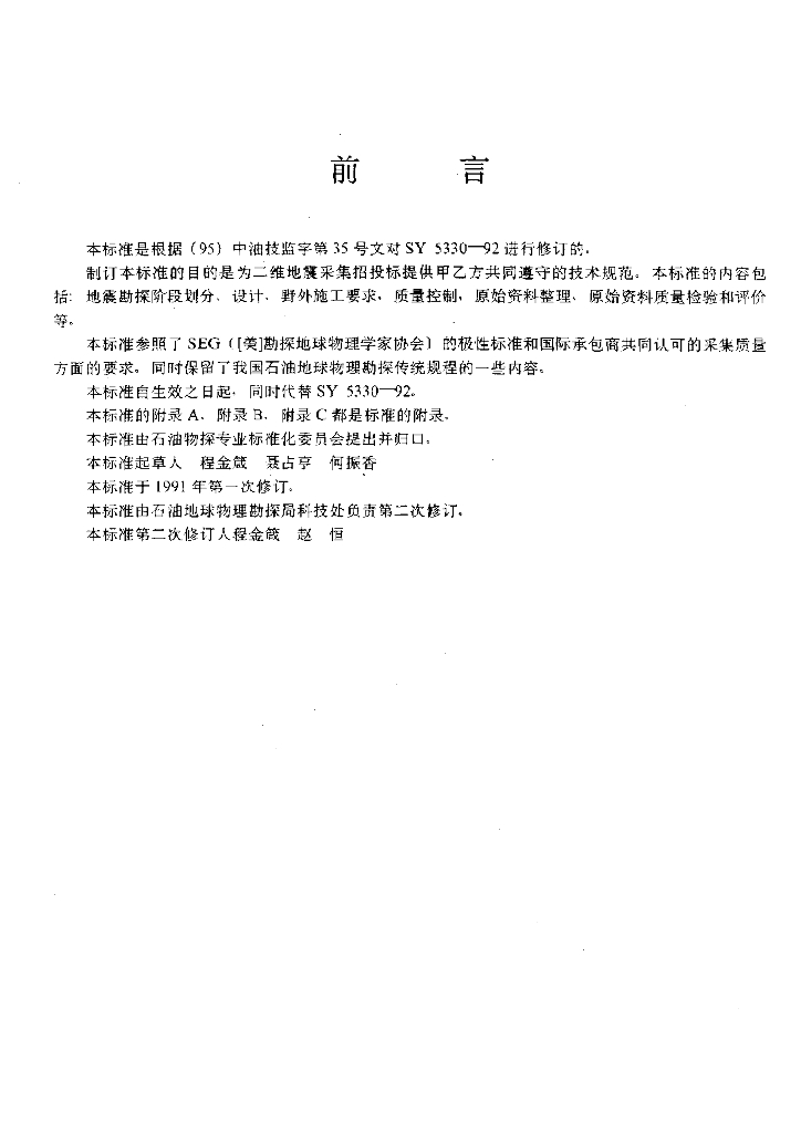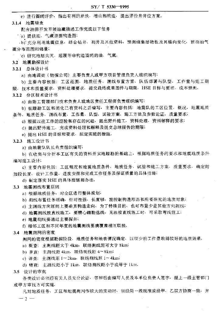 SY/T 5330-1995 陆上二维地震勘探资料采集技术规范