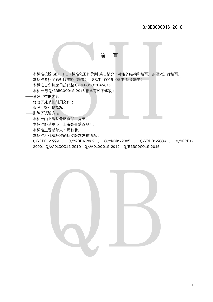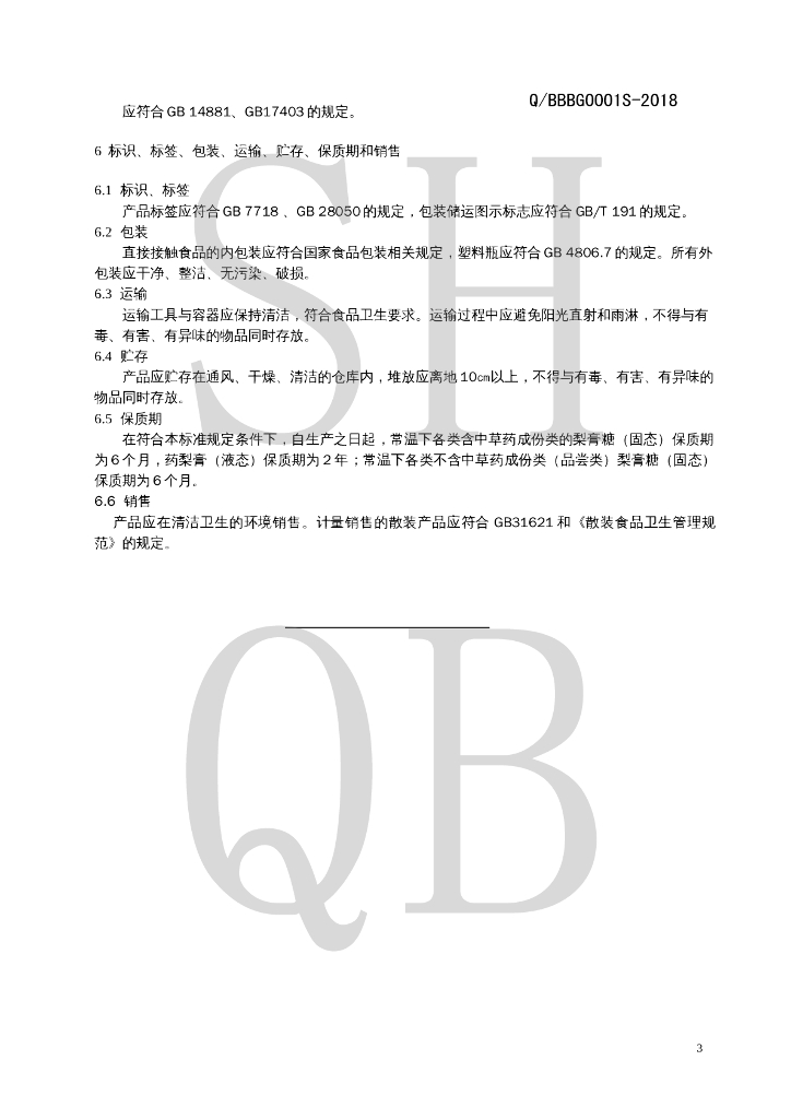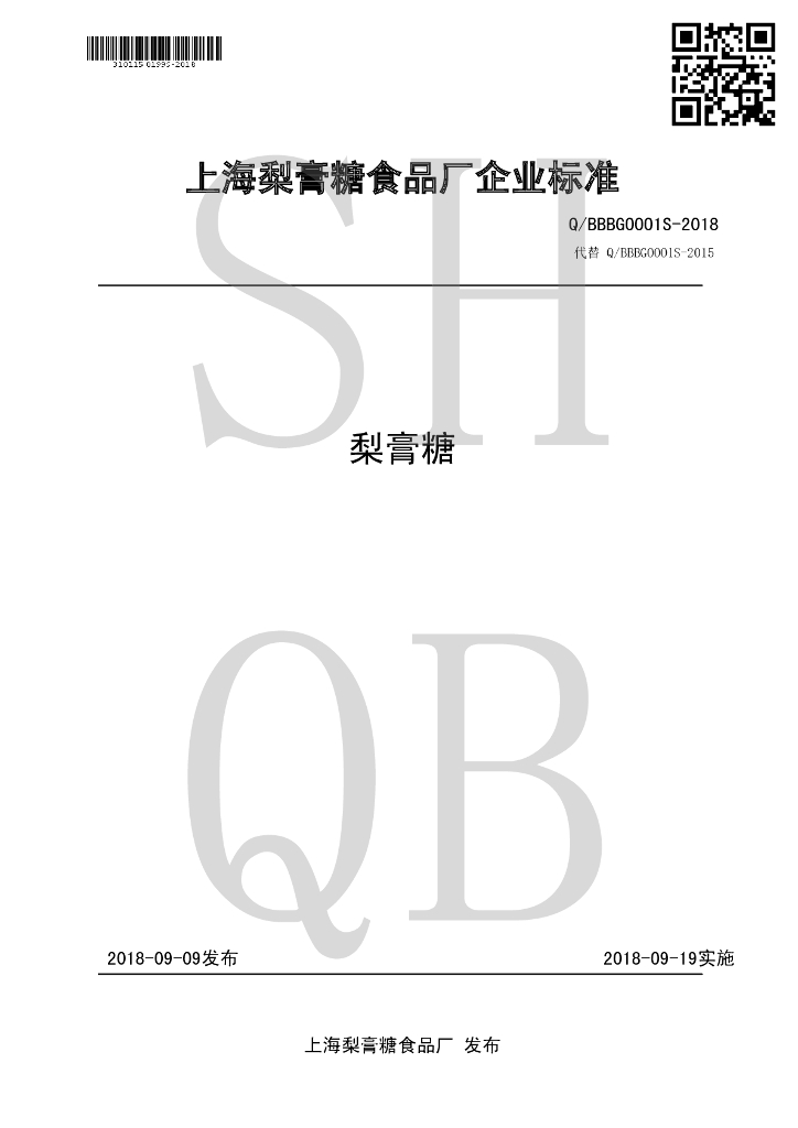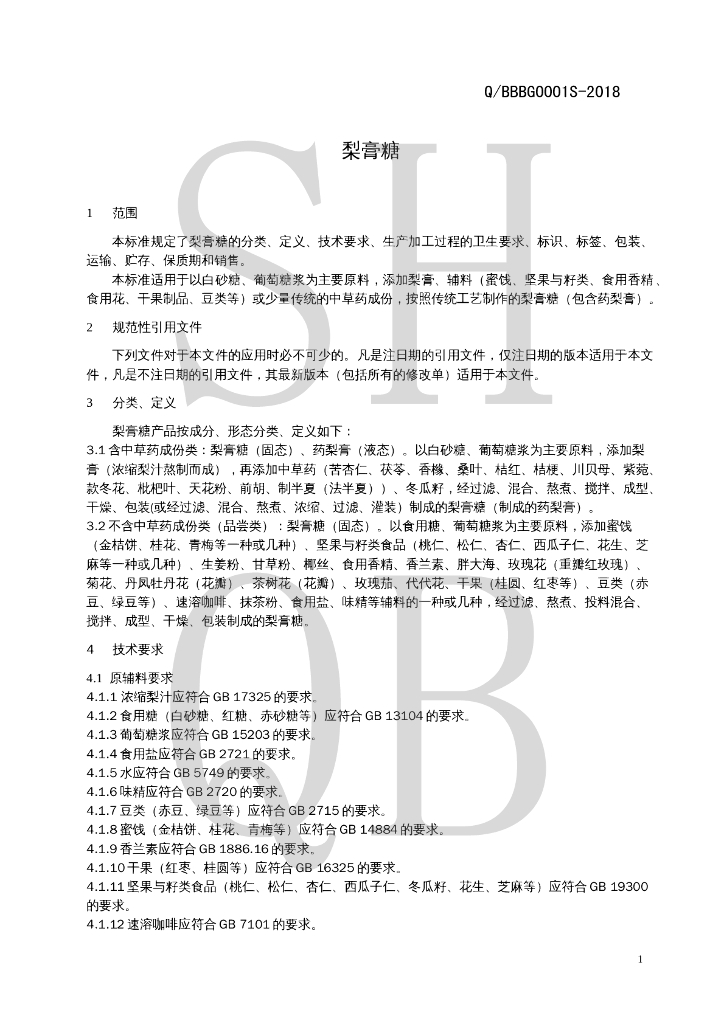 Q/BBBG 0001S-2018 梨膏糖