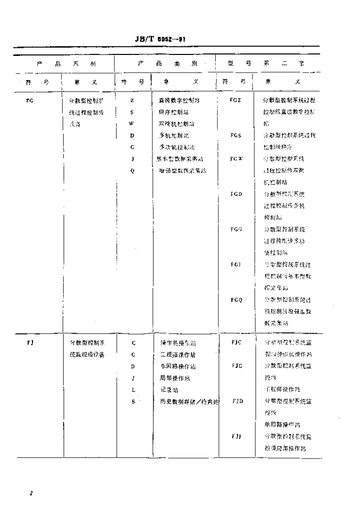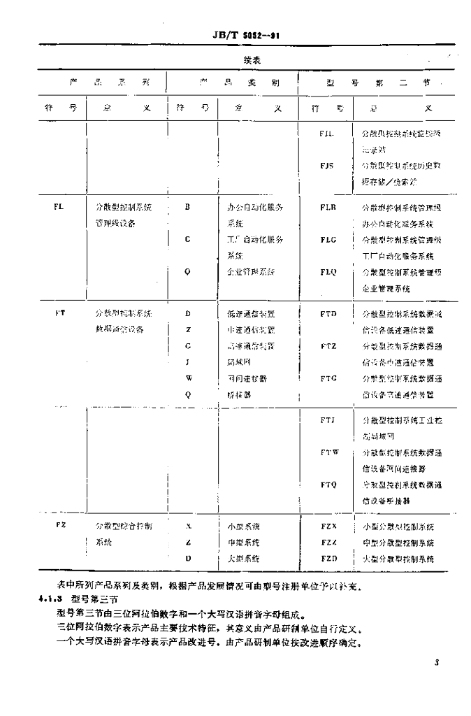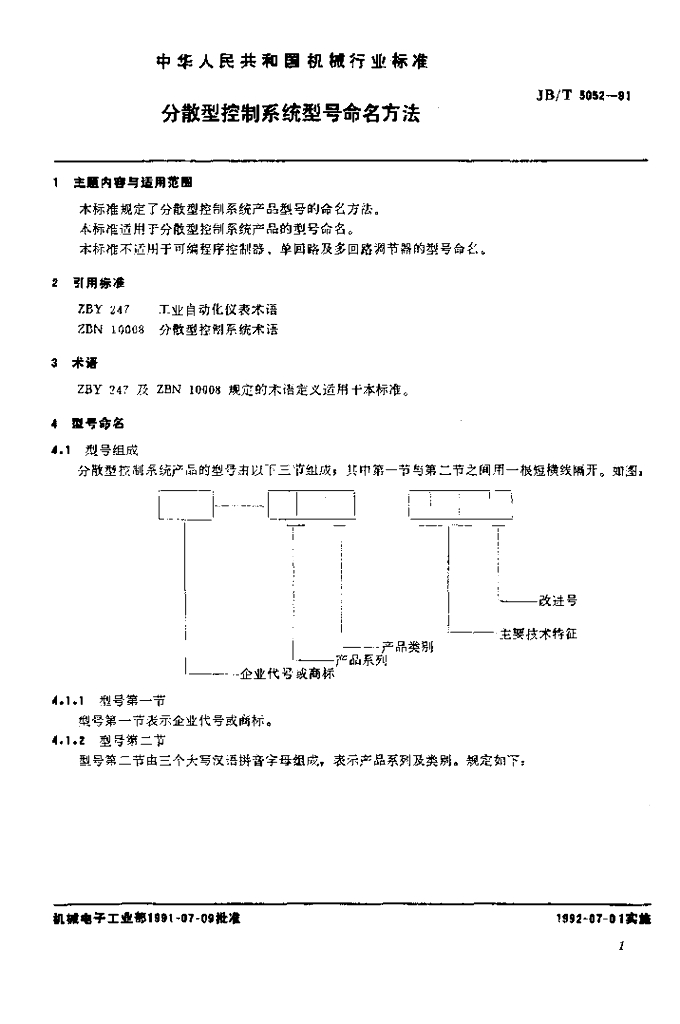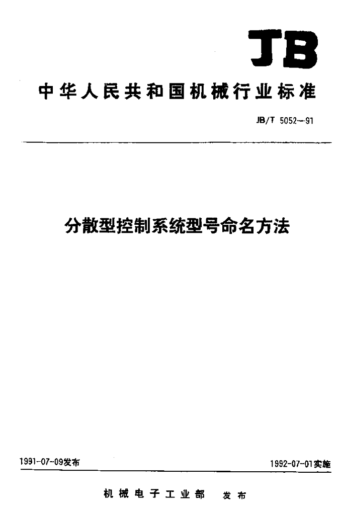 JB/T 5052-1991 分散型控制系统 型号命名方法