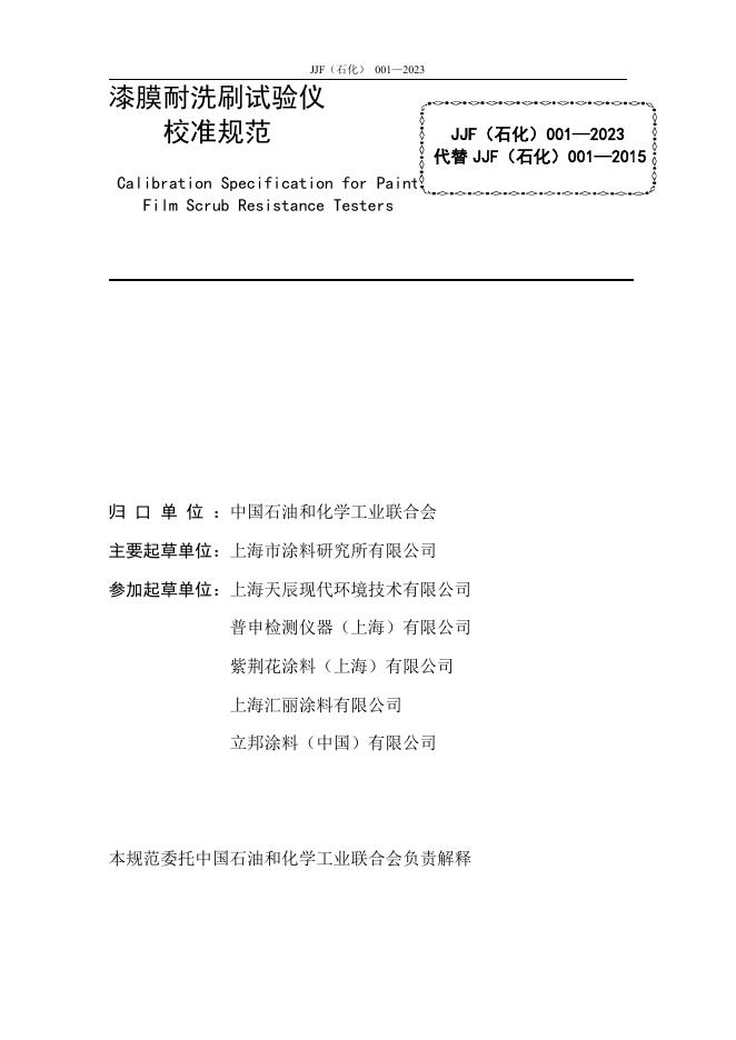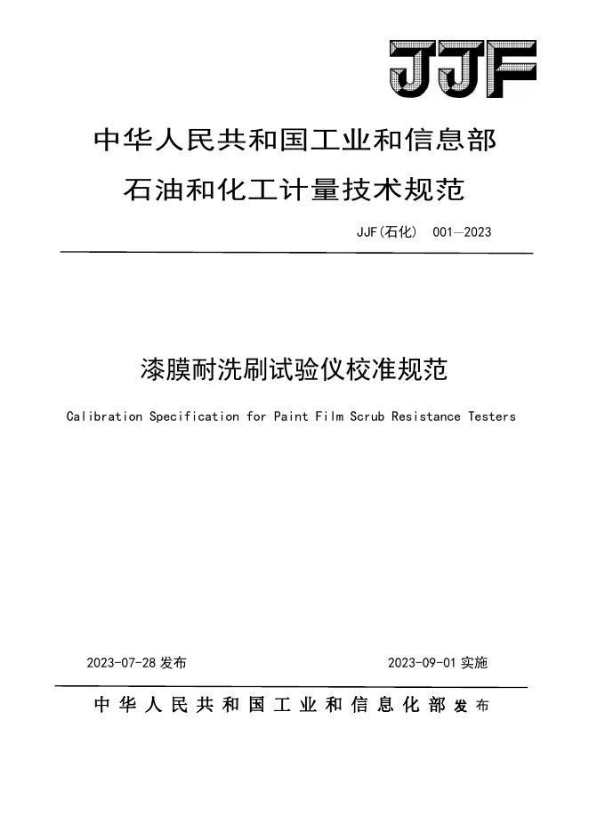 JJF(石化)001-2023 漆膜耐洗刷试验仪校准规范