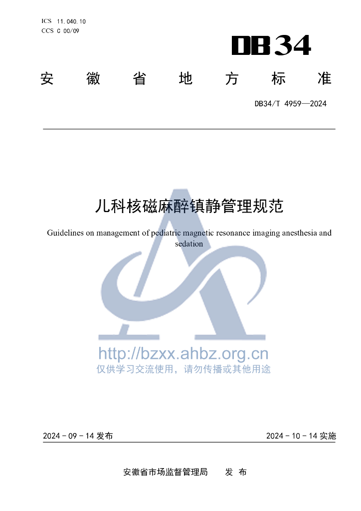 DB34/T 4959-2024 儿科核磁麻醉镇静管理规范