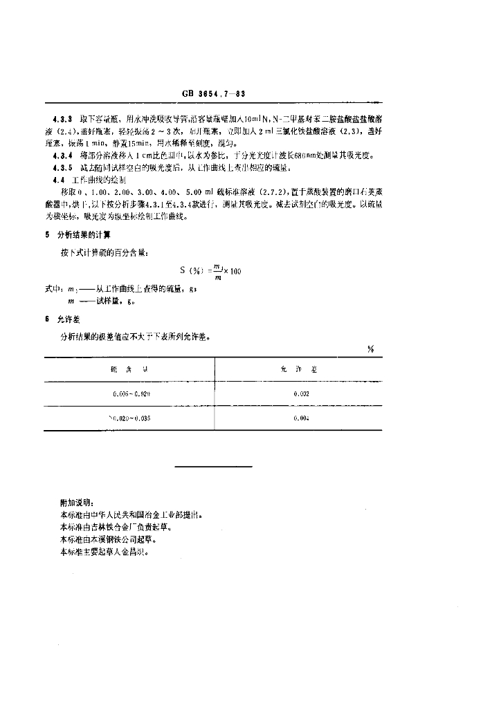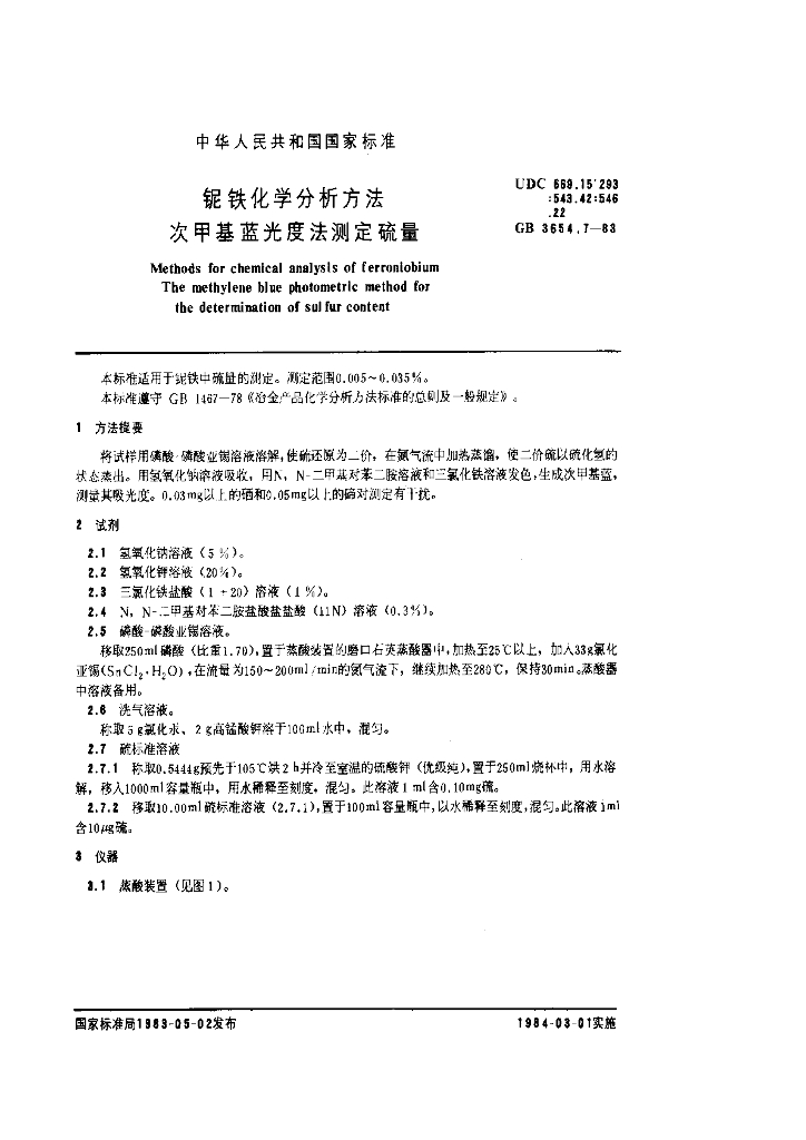 GB/T 3654.7-1983 铌铁化学分析方法 次甲基蓝光度法测定硫量