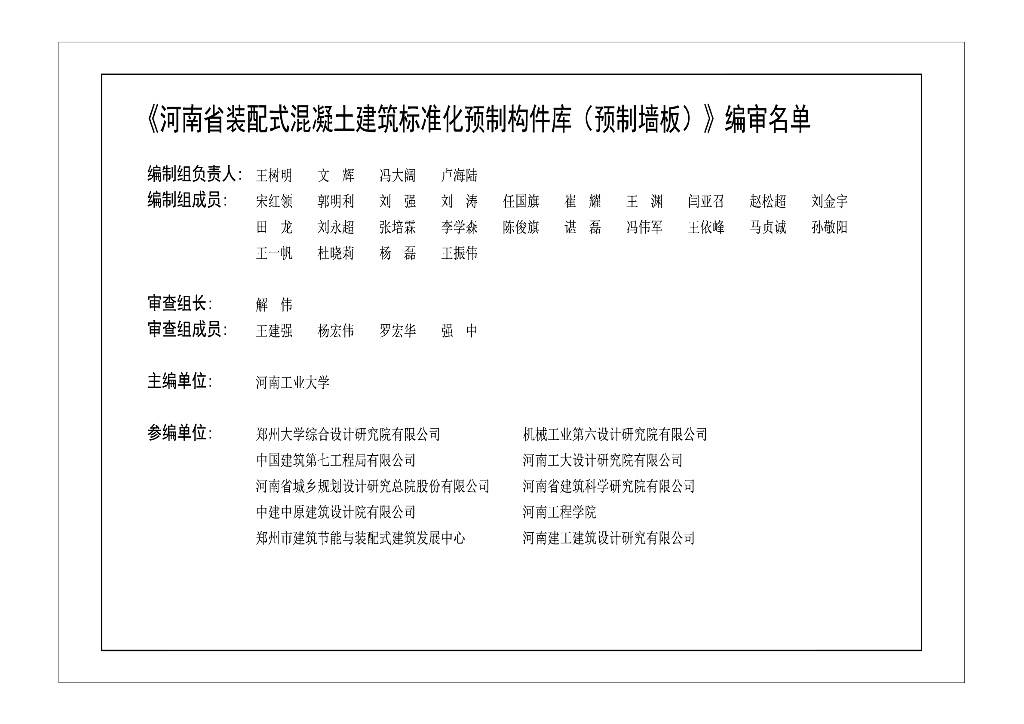 河南省装配式混凝土建筑标准化预制构件库(预制墙板)