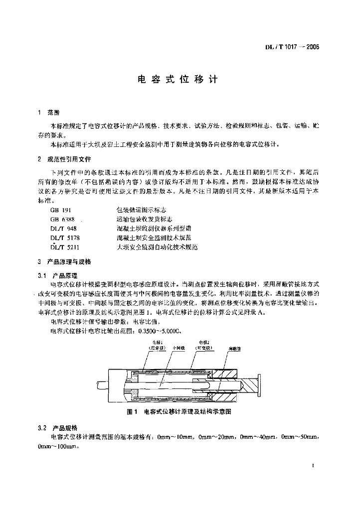 DL/T 1017-2006 电容式位移计