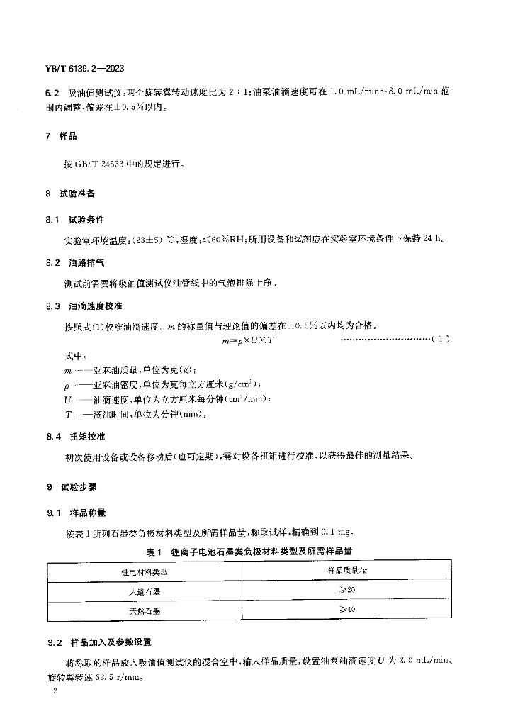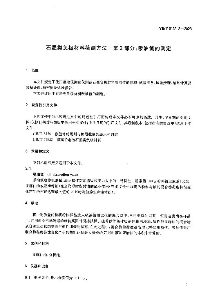 YB/T 6139.2-2023 石墨类负极材料检测方法 第2部分:吸油值的测定