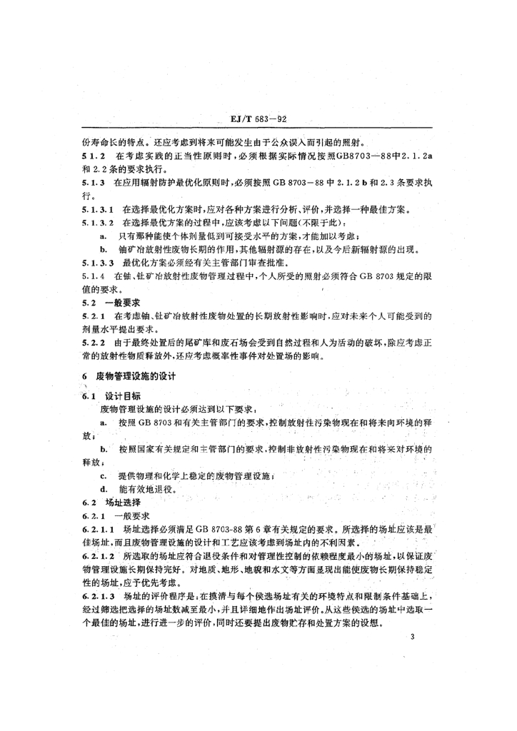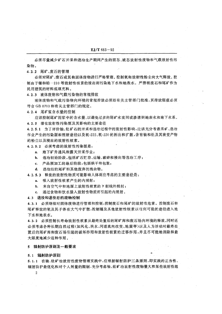 EJ/T 683-1992 铀、钍矿冶放射性废物安全管理