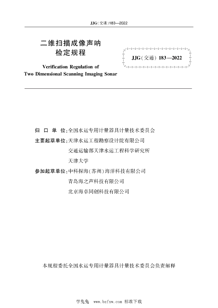 JJG(交通)183-2022 二维扫描成像声呐检定规程