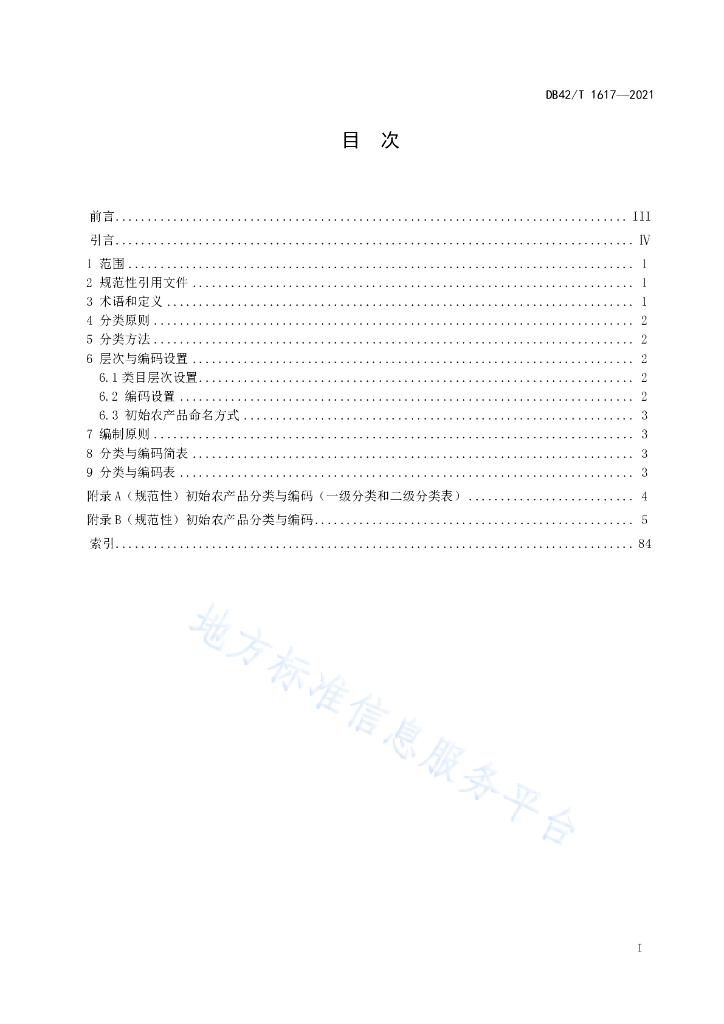 DB42/T 1617-2021 基于农业信息化应用的初始农产品分类与编码