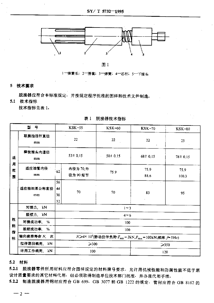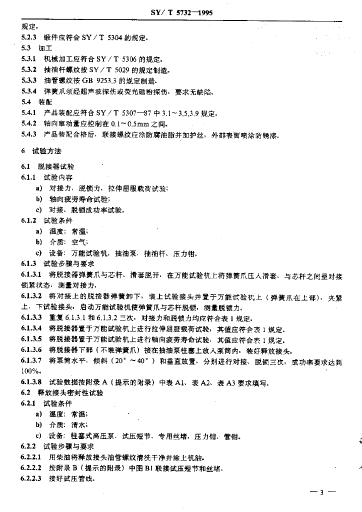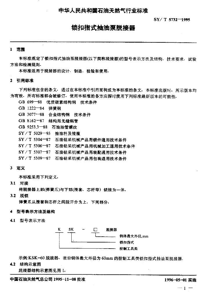 SY/T 5732-1995 锁扣指式抽油泵脱接器