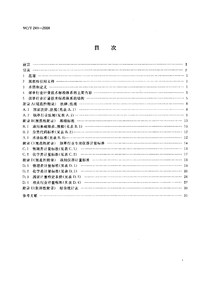 YC/T 241-2008 烟草行业计量技术标准体系