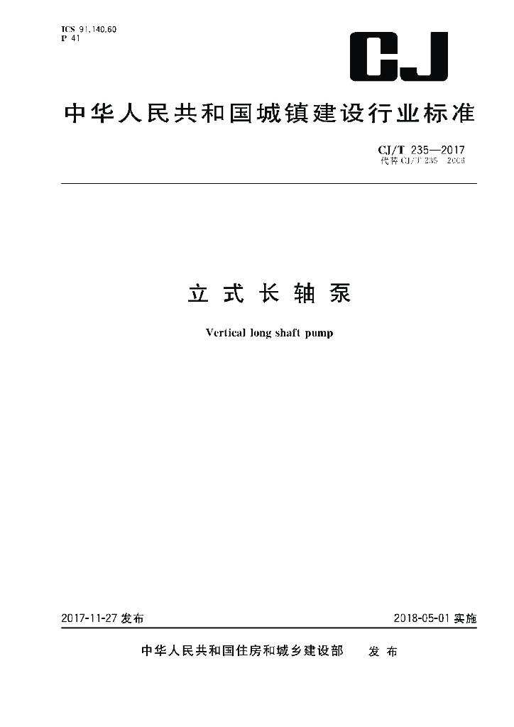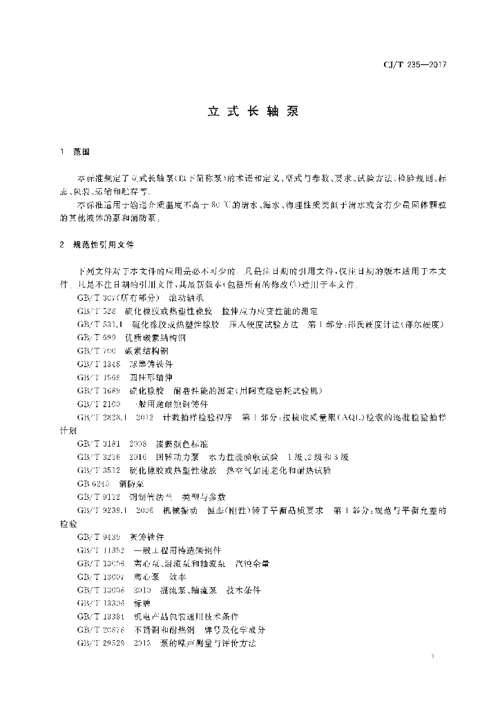 CJ/T 235-2017 立式长轴泵