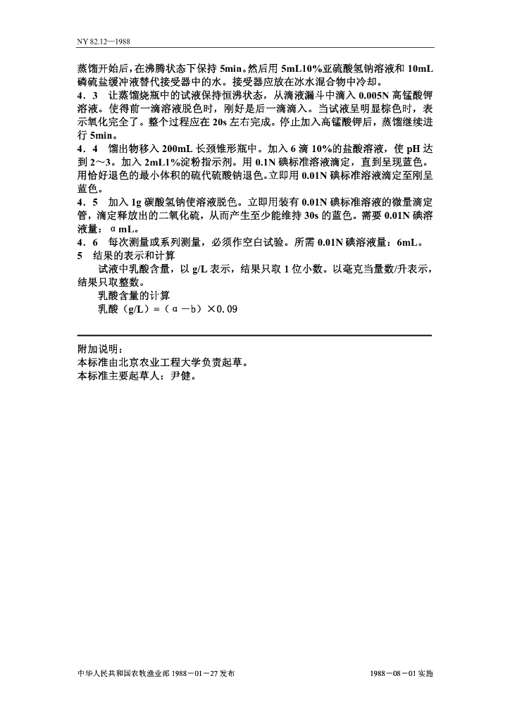 NY 82.12-1988 果汁测定方法 乳酸的测定