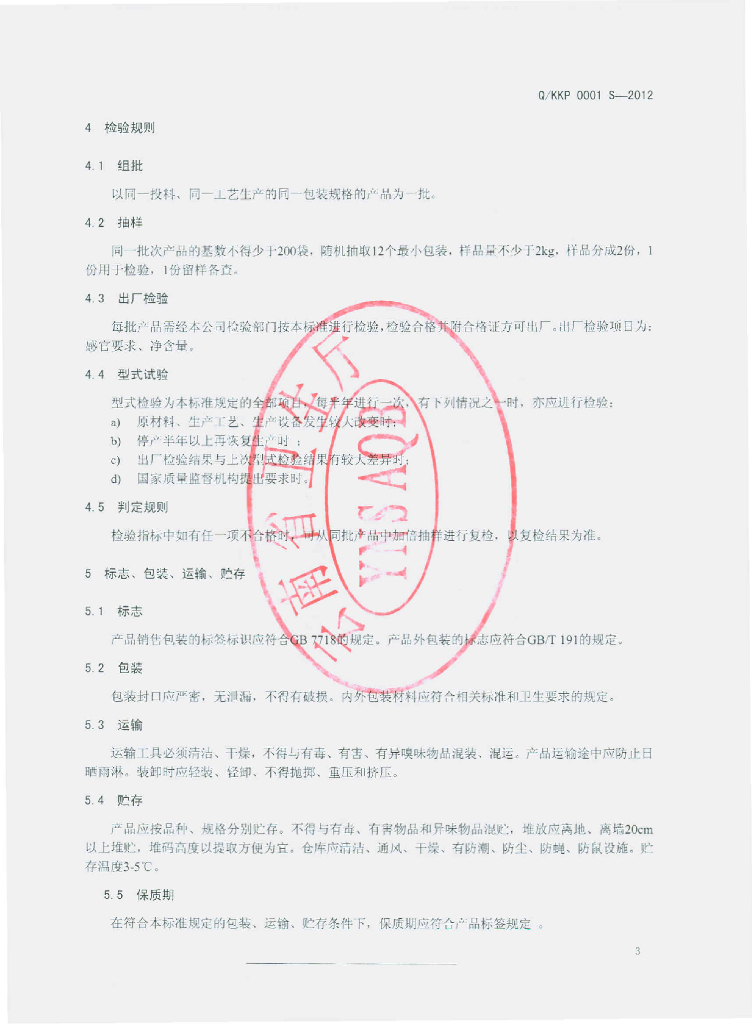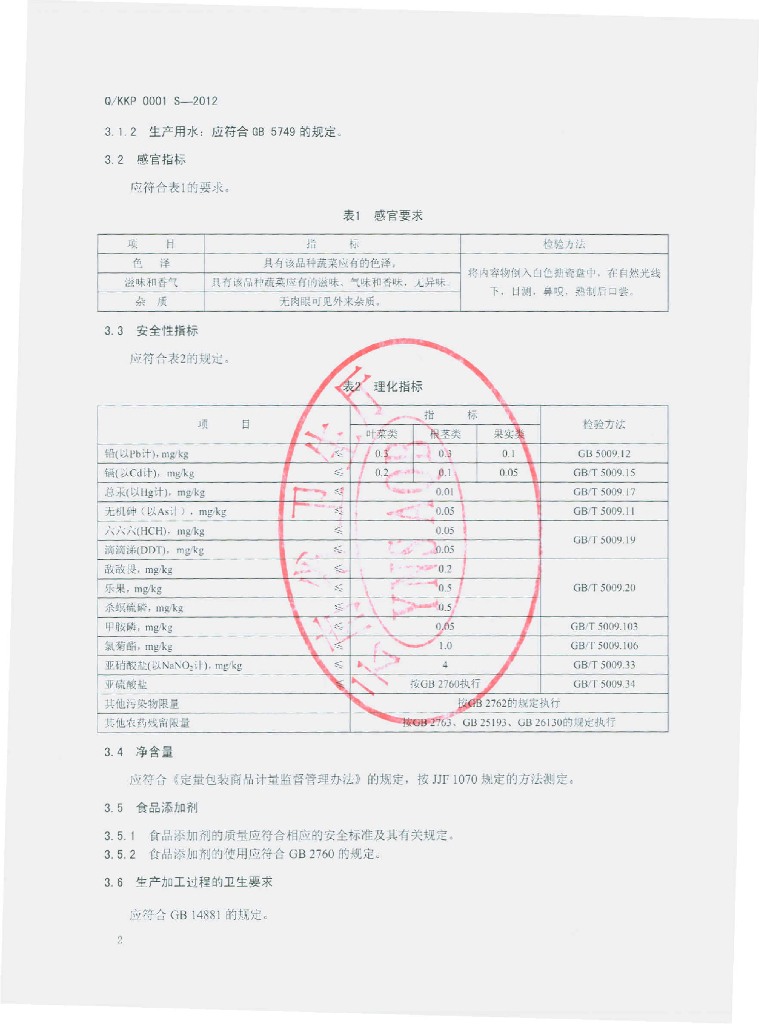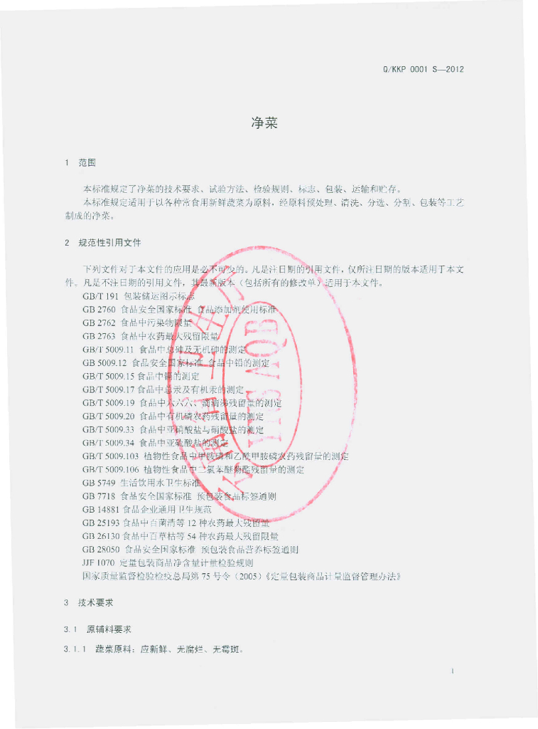 Q/KKP 0001S-2012 净菜