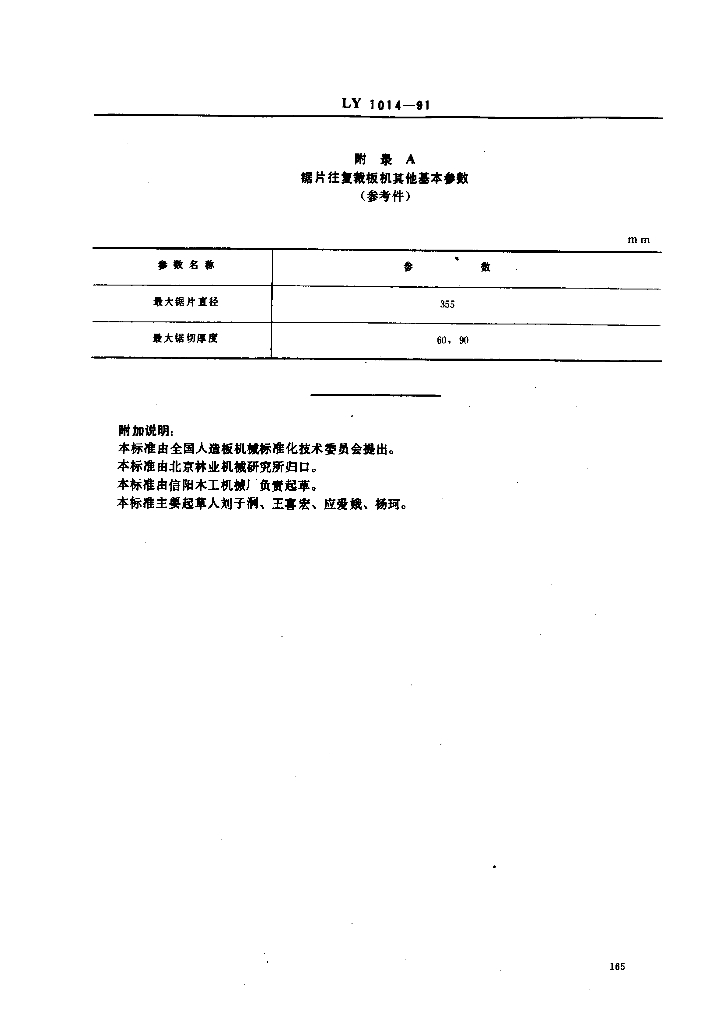 LY 1014-1991 锯片往复裁板机参数