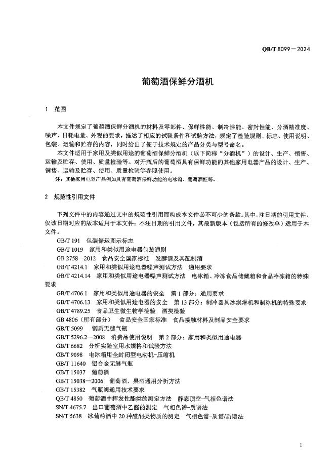 QB/T 8099-2024 葡萄酒保鲜分酒机