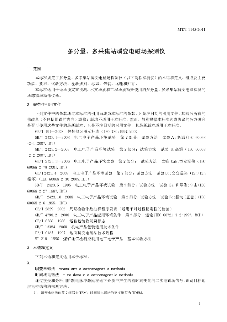 MT/T 1145-2011 多分量、多采集站瞬变电磁场探测仪