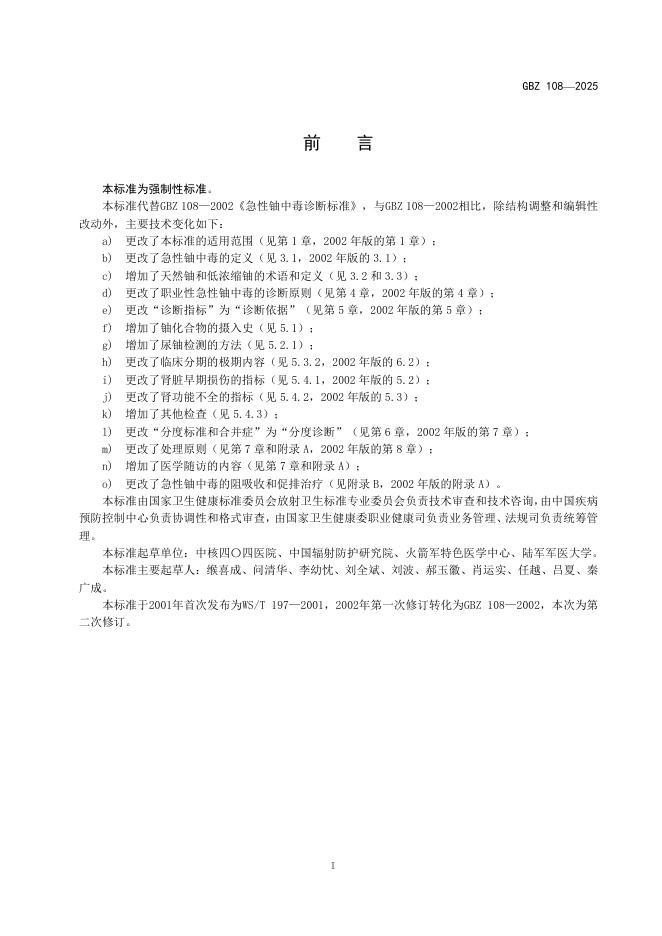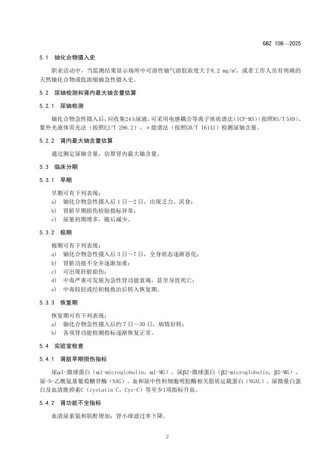 GBZ 108-2025 职业性急性铀中毒诊断标准