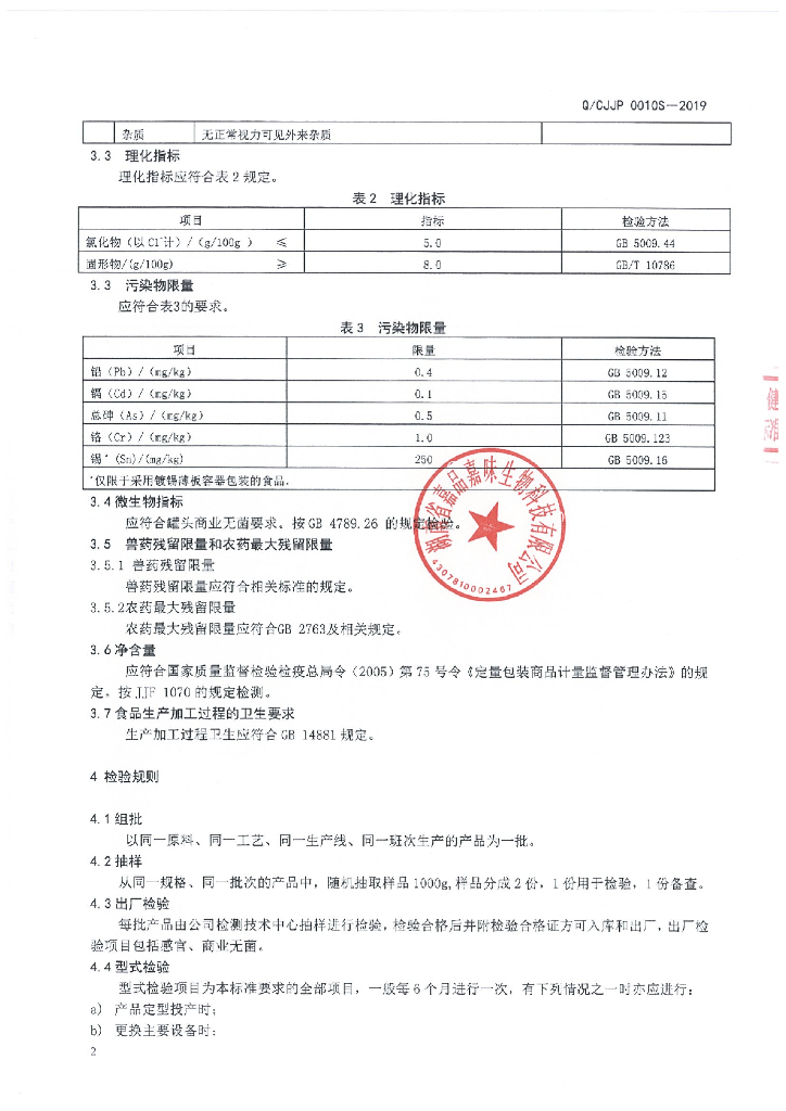 Q/CJJP 0010S-2019 畜禽肉汤罐头