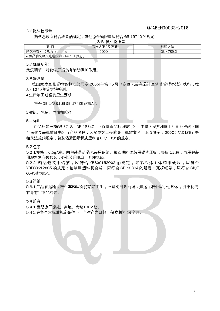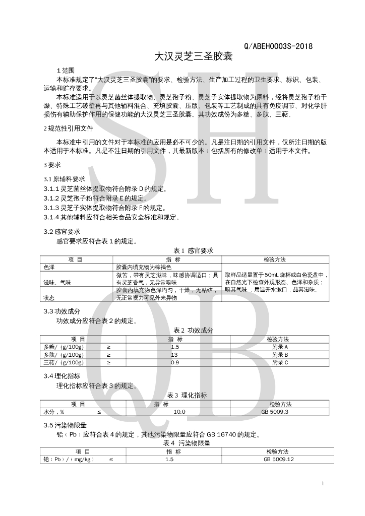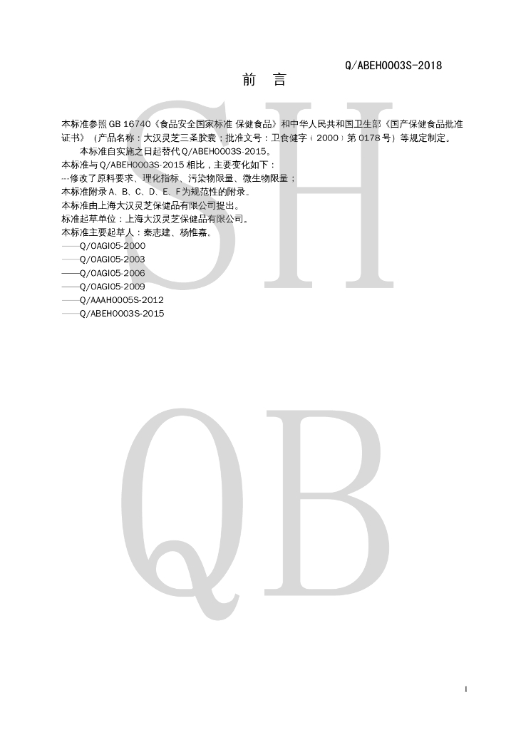 Q/ABEH 0003S-2018 大汉灵芝三圣胶囊