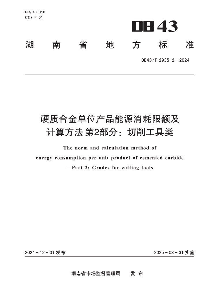 DB43/T 2935.2-2024 硬质合金单位产品能源消耗限额及计算方法 第2部分:切削工具类
