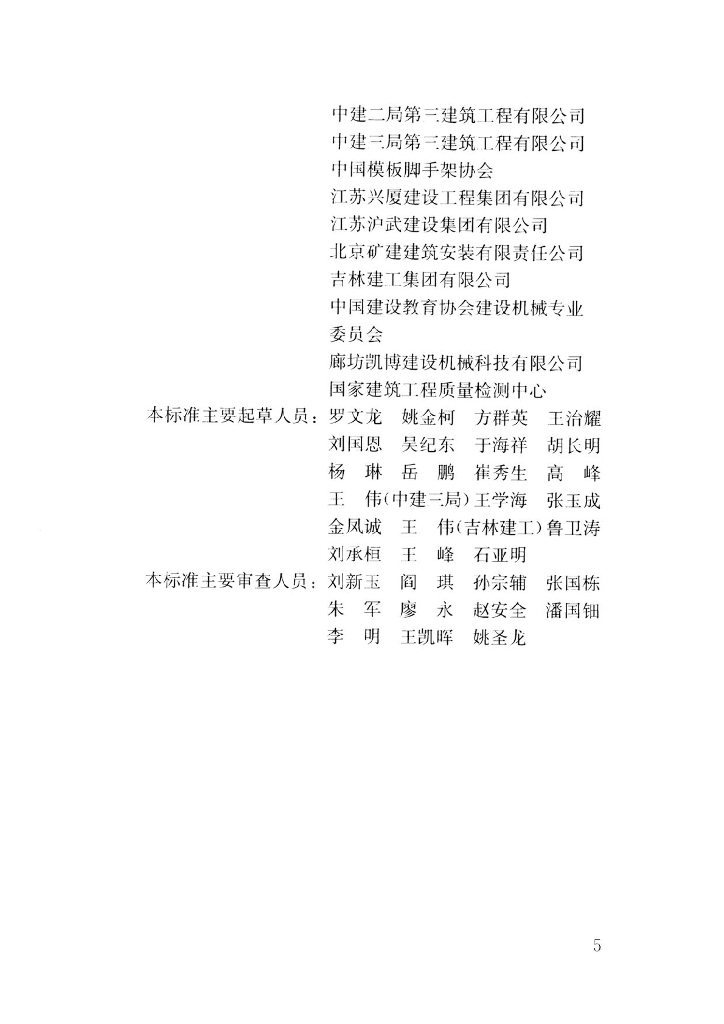 中国建筑科学研究院有限公司、武汉东方建设集团有限公司、北京奥宇模板有限公司、郑州市市政工程总公司、重庆建工第九建设有限公司、西安建筑科技大学、无锡速捷脚手架工程有限公司、中国新兴建设开发有限责任公司、中建二局第三建筑工程有限公司、中建三局第三建筑工程有限公司、中国模板脚手架协会、江苏兴厦建设工程集团有限公司、江苏沪武建设集团有限公司、北京矿建建筑安装有限责任公司、吉林建工集团有限公司、中国建设教育协会建设机械专业委员会、廊坊凯博建设机械科技有限公司、国家建筑工程质量检测中心