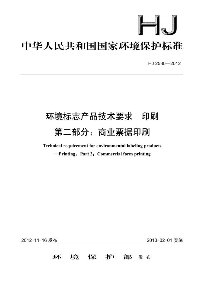 HJ 2530-2012 环境标志产品技术要求 印刷 第二部分:商业票据印刷