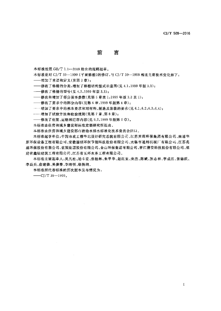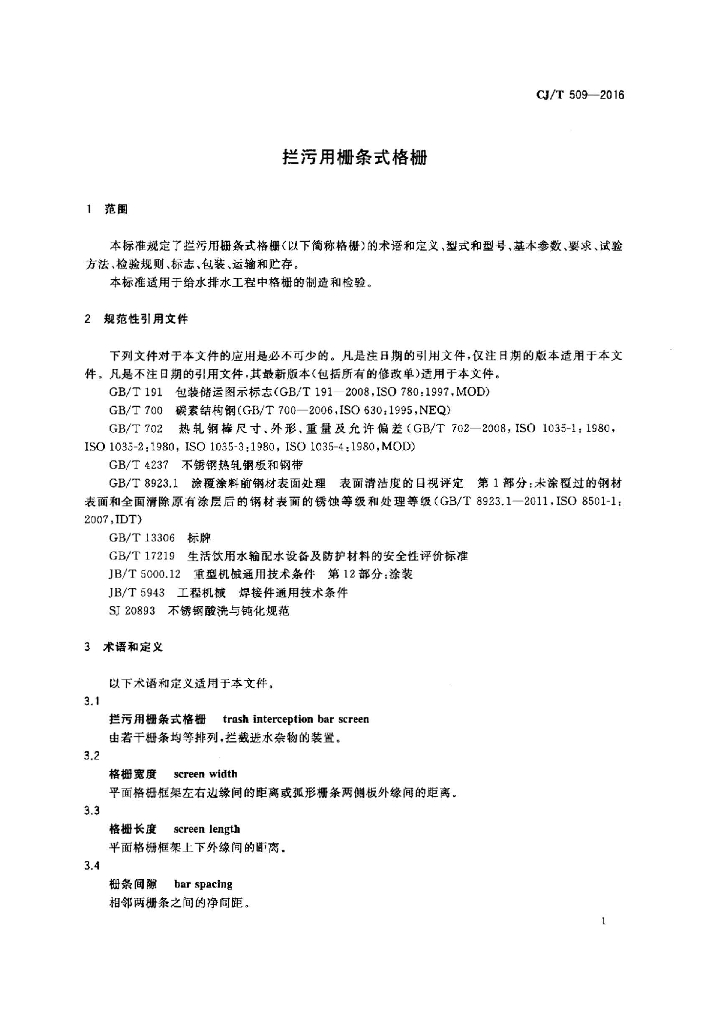 CJ/T 509-2016 拦污用栅条式格栅