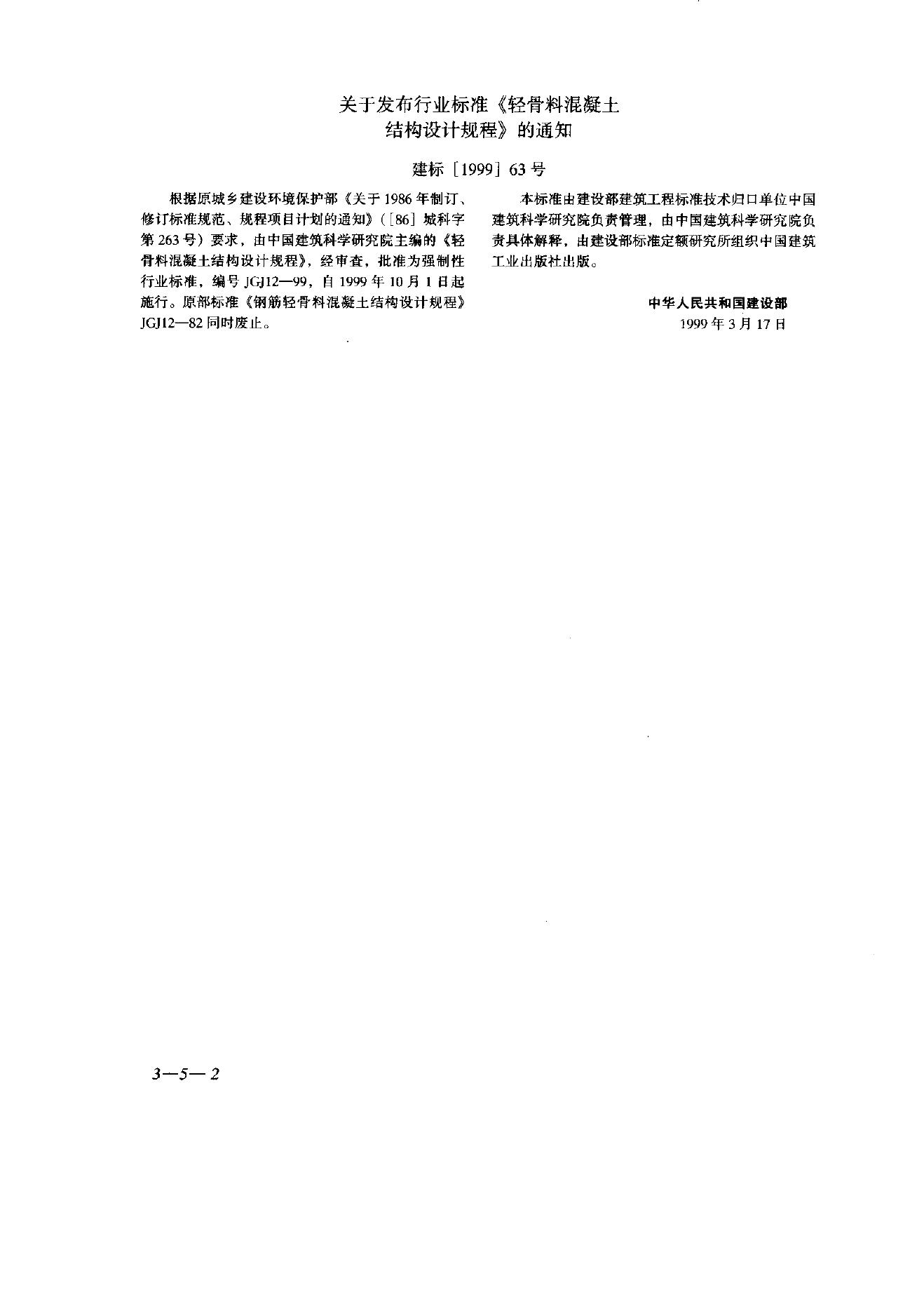 JGJ 12-1999 轻骨料混凝土结构设计规程