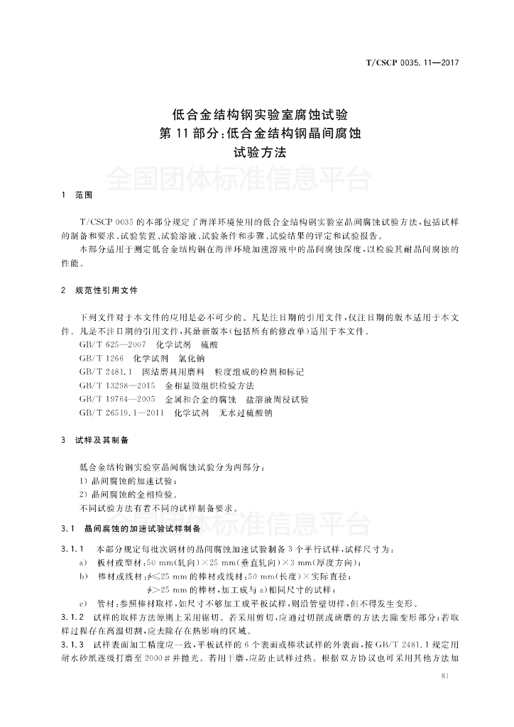 T/CSCP 0035.11-2017 低合金结构钢实验室腐蚀试验 第11部分:低合金结构钢晶间腐蚀试验方法