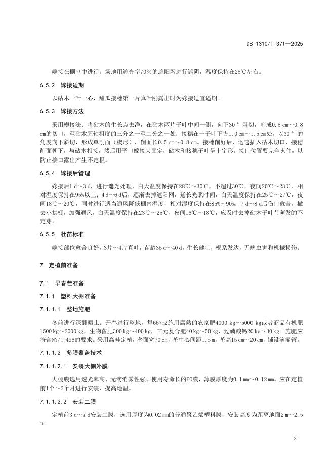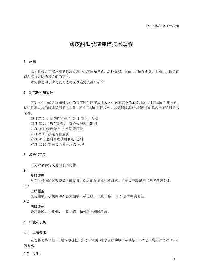 DB1310/T 371-2025 薄皮甜瓜设施栽培技术规程