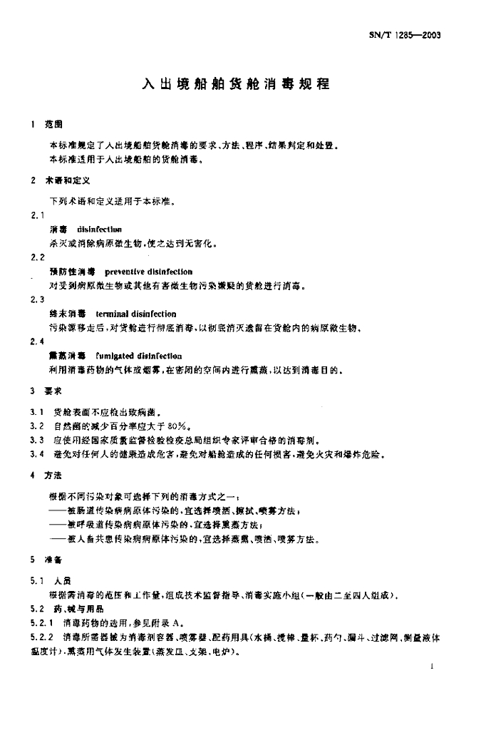 SN/T 1285-2003 入出境船舶货舱消毒规程