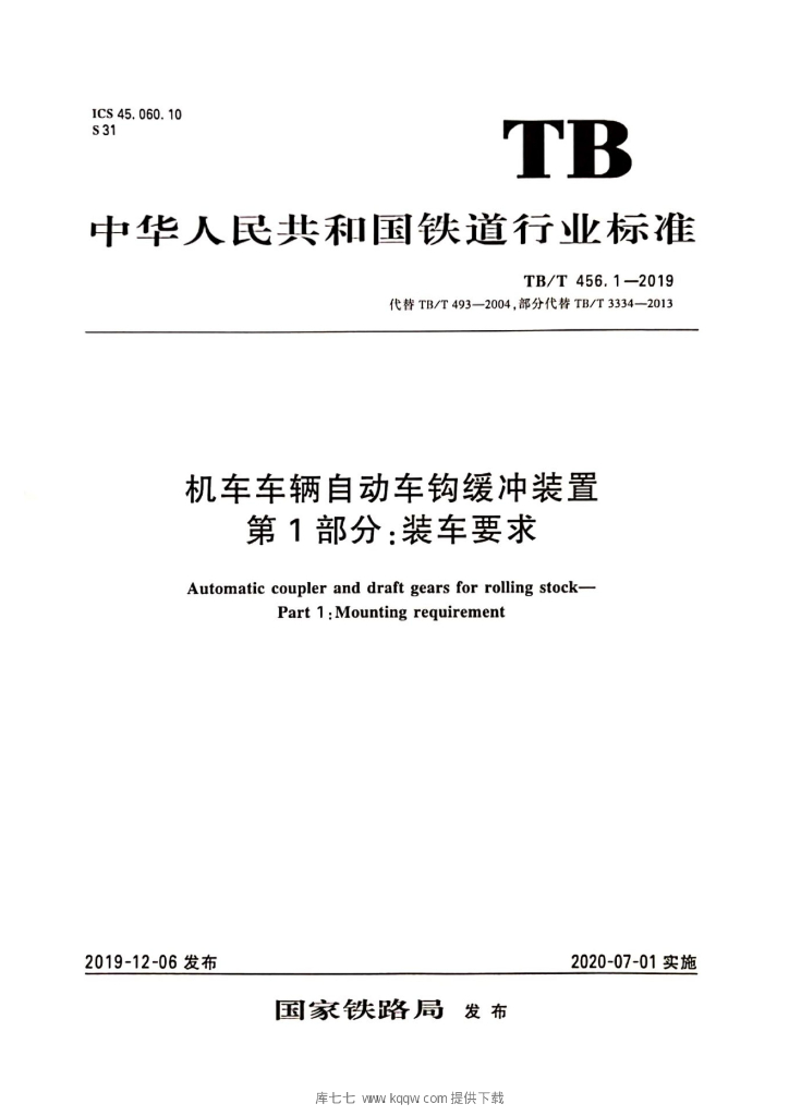 - 代替标准:TB/T 493-2004 部分代替:TB/T 3334-2013