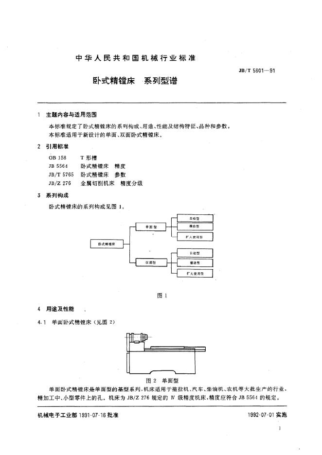 JB/T 5601-1991 卧式精镗床 系列型谱