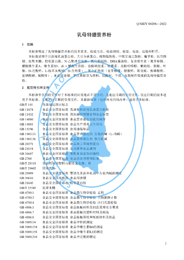 Q/SHJY 0020S-2022 乳母特膳营养粉
