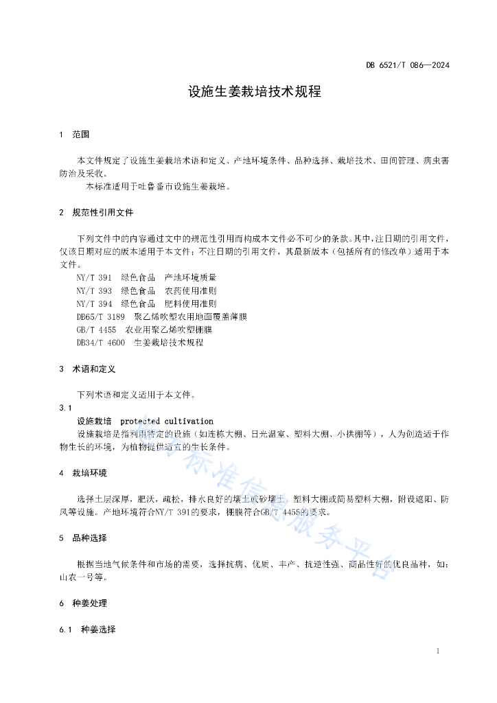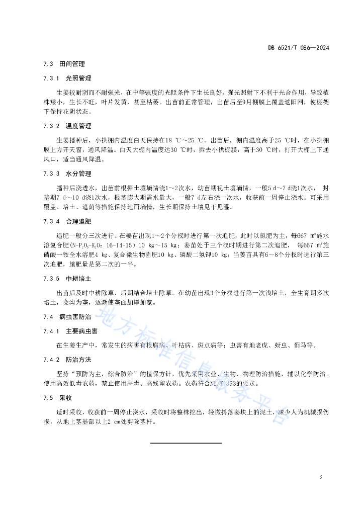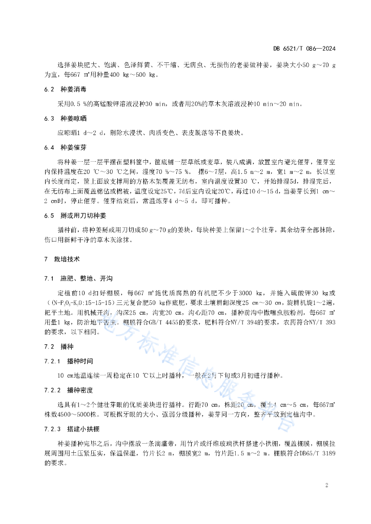 DB6521/T 086-2024 设施生姜栽培技术规程