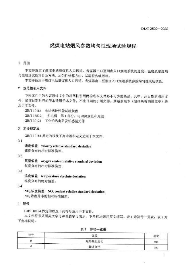 DL/T 2502-2022 燃煤电站烟风参数均匀性现场试验规程