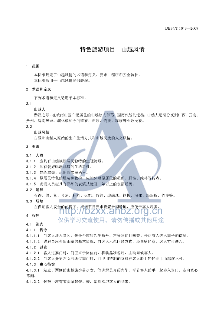 DB34/T 1043-2009 特色旅游项目 山越风情