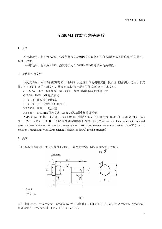 HB 7411-2013(2017) A286MJ螺纹六角头螺栓