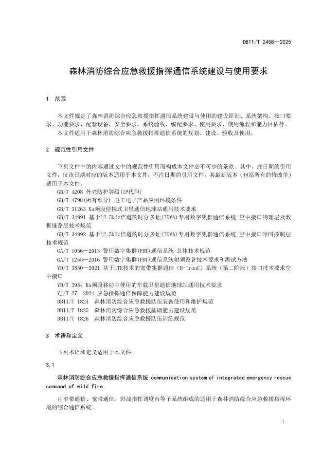 DB11/T 2458-2025 森林消防综合应急救援指挥通信系统建设与使用要求