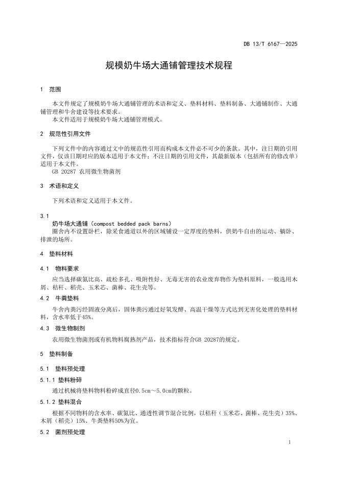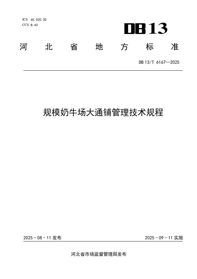 DB13/T 6167-2025 规模奶牛场大通铺管理技术规程