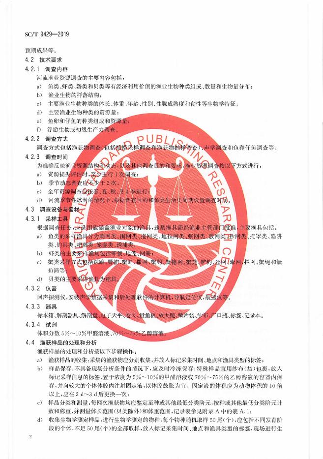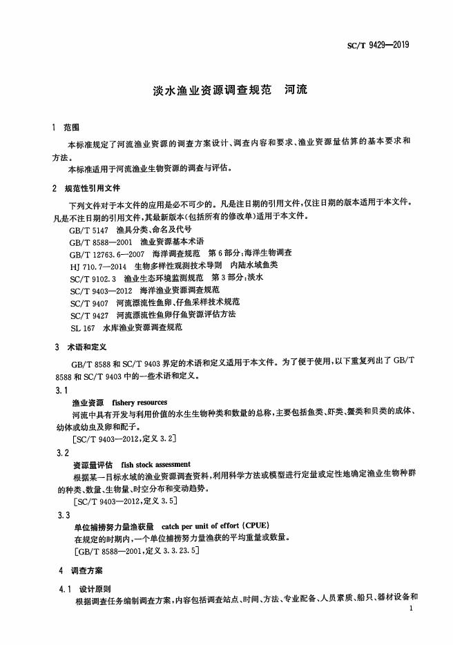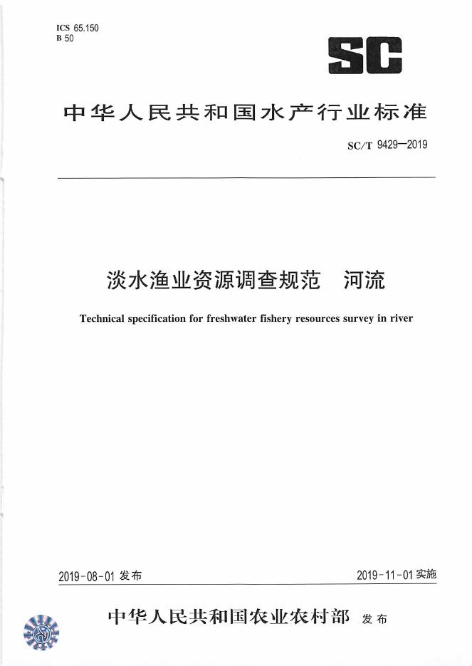 SC/T 9429-2019 淡水渔业资源调查规范 河流