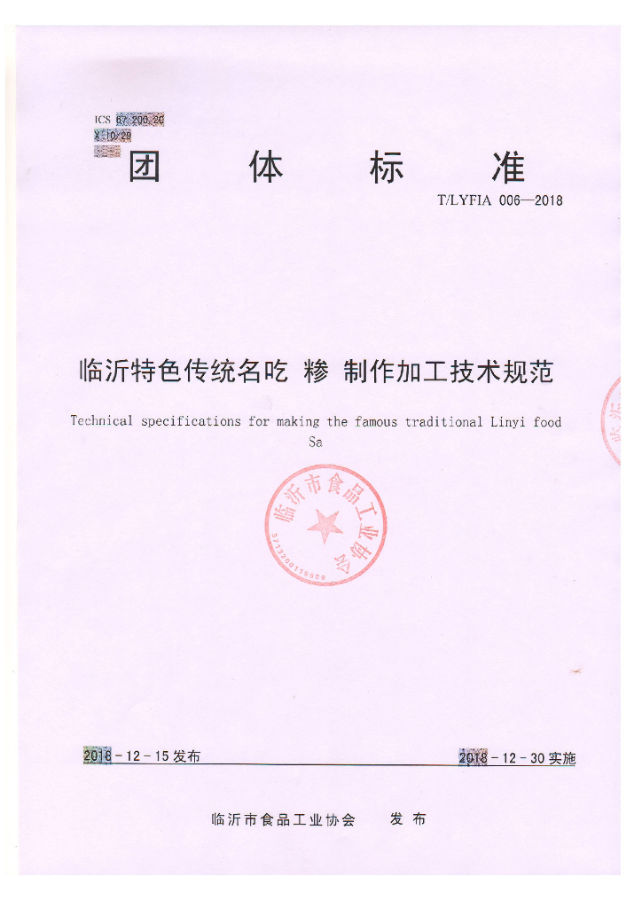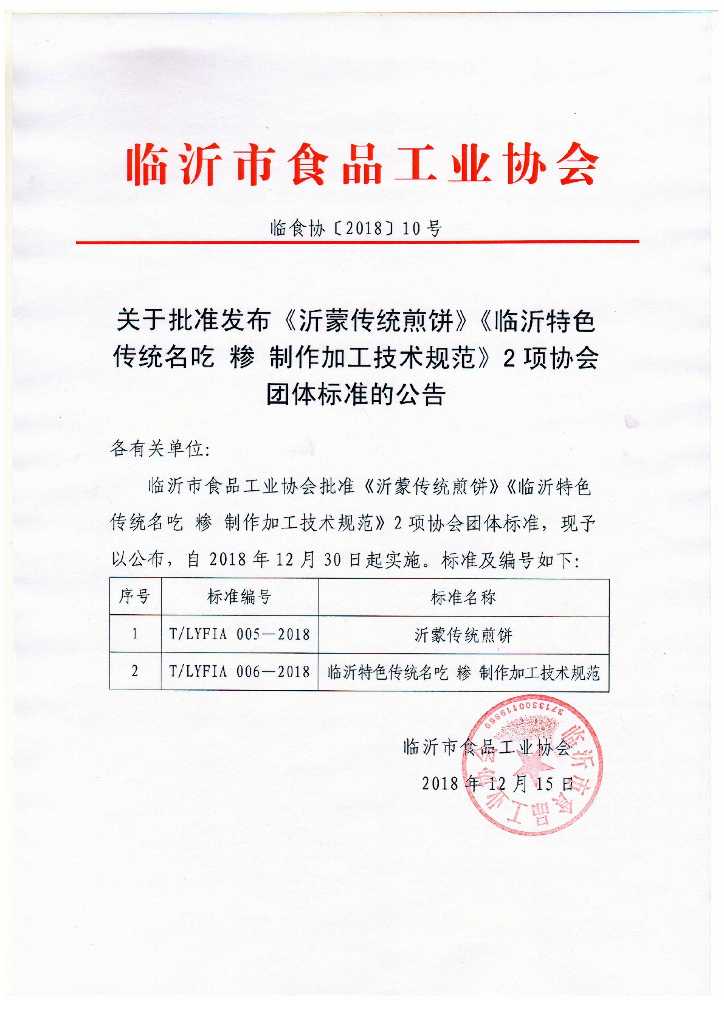 临沂市食品工业协会、临沂市营养师协会、临沂市技术监督信息所、临沂市今日美食职业培训学校、山东中检检测技术有限公司、常路镇煎饼协会。