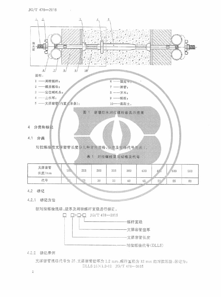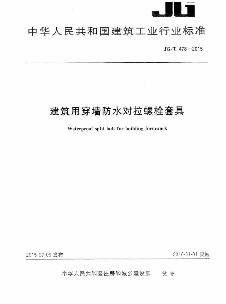 JG/T 478-2015 建筑用穿墙防水对拉螺栓套具
