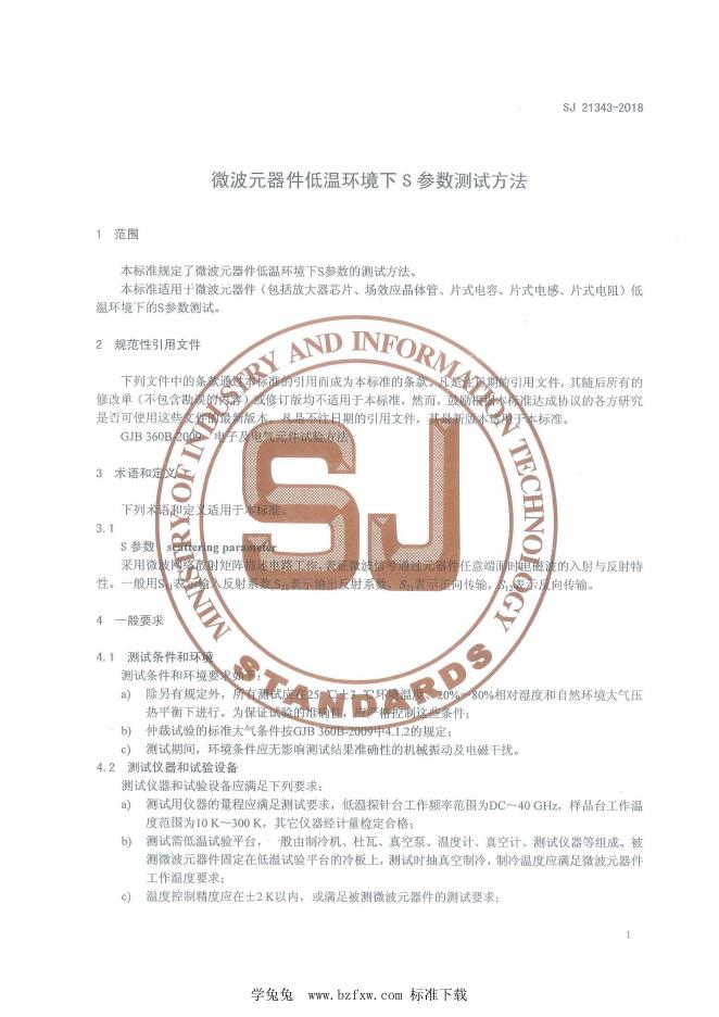 SJ 21343-2018 微波元器件低温环境下S参数测试方法