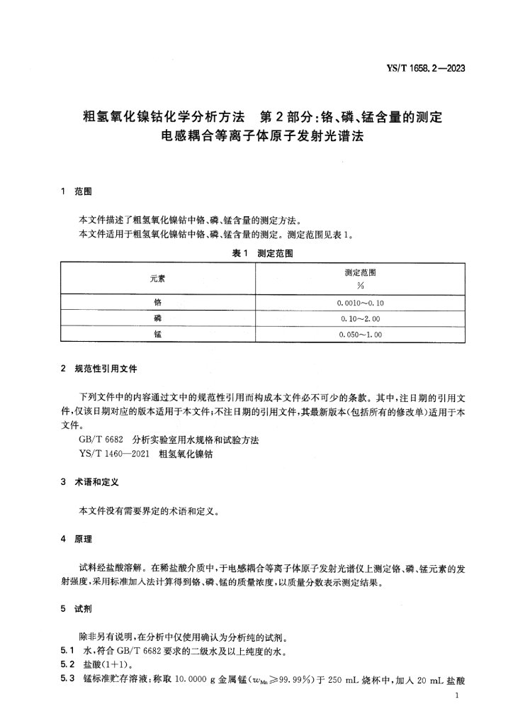 YS/T 1658.2-2023 粗氢氧化镍钴化学分析方法 第2部分:铬、磷、锰含量的测定 电感耦合等离子体原子发射光谱法