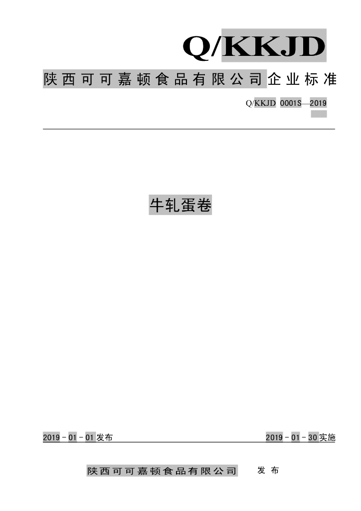 Q/KKJD 0001S-2019 牛轧蛋卷